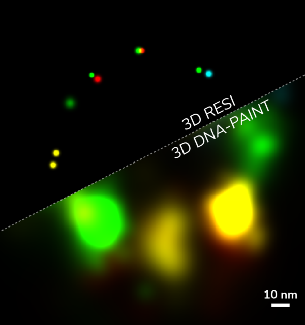 This kit provides ready-to-use single-domain antibody (sdAB) binders for RESI (Resolution Enhancement by Sequential Imaging) of GFP-tagged proteins. RESI enables users the highest possible resolutions (<1 nm).